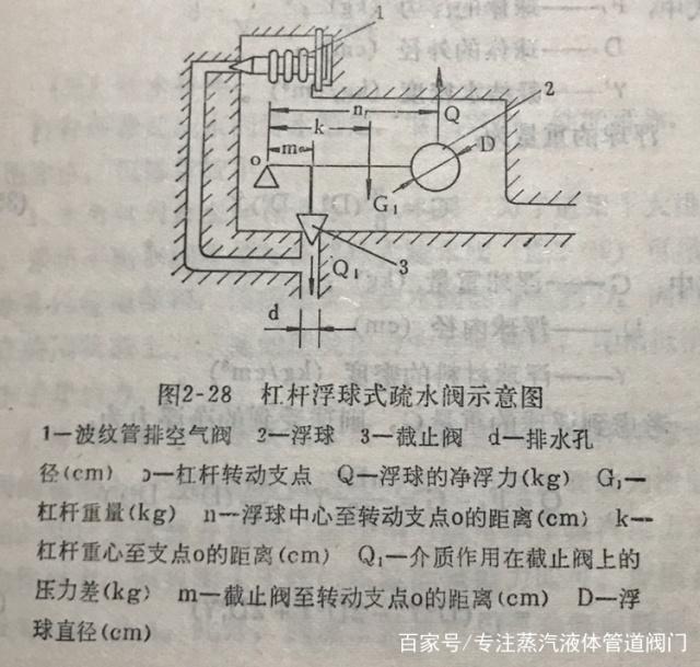 圖2-28為截止閥型杠桿浮球式疏水閥的結(jié)構(gòu)示意圖。杠桿浮球式疏水閥排水穩(wěn)定,漏氣率小,性能可靠,排出飽和水,但排量較小。