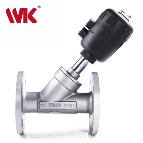 3、WK氣動法蘭角座閥先進的氣動控制器:加厚工程塑料外殼,安全可靠。低磨損的活塞結構,容量大而低耗氣量。內部元件自潤滑,免維護