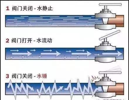 說的通俗些:突然停電或氣動調節(jié)閥閥門關閉太快,由于壓力水流的慣性,產生水流沖擊波,就象錘子敲打一樣,我們稱之為水錘。
