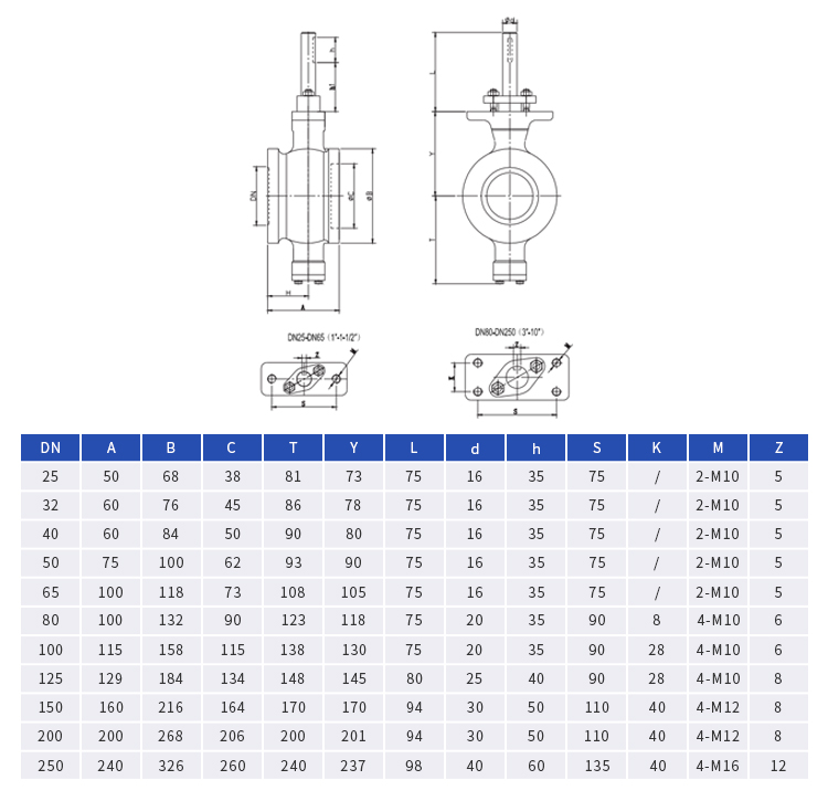 對(duì)夾式和法蘭式都是采用的整體側(cè)裝式結(jié)構(gòu),結(jié)構(gòu)剛性強(qiáng)。不容易引起變形和外泄。閥體內(nèi)裝有上下潤(rùn)滑軸承,與閥桿接觸面積大。承載能力高,摩擦系數(shù)小,使用扭矩小。