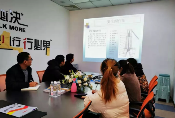開課之后王老師非常認真的從安全閥的種類及安裝方向、蝶閥的作用等方面為現(xiàn)場學習的員工們進行了細致的講解。安全閥的作用,壓力超過規(guī)定值就會發(fā)出警報作用,而防止壓力超出范圍,起到保護作用。整定壓力是為了彈簧,合適的彈簧才不會導致在使用期間出現(xiàn)壓力不足等問題。課堂之中同學們也紛紛舉手提出了自己問題,王老師耐心聽取并回答了同學們問題。