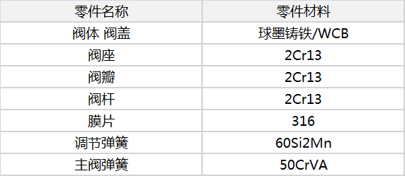 導(dǎo)閥型隔膜式減壓閥材質(zhì)圖表
